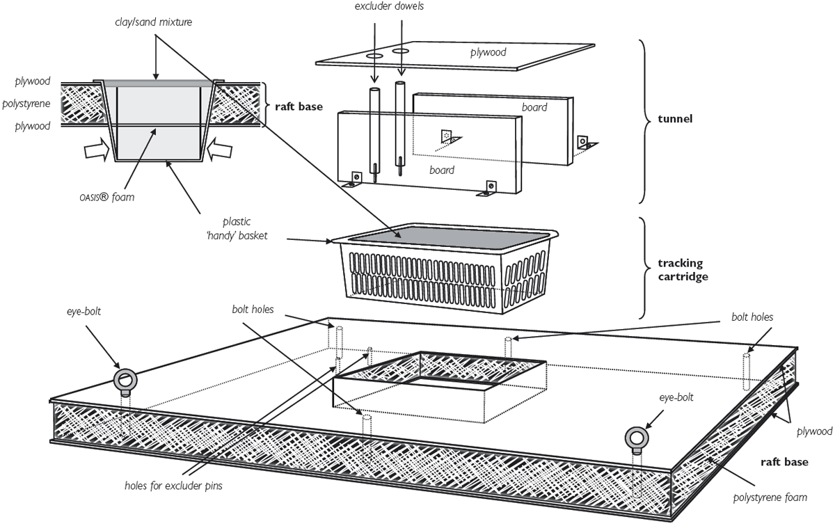 The GWCT Mink Raft has three elements (see Figure 1): a buoyant raft base, a removable tracking cartridge and a wooden tunnel.